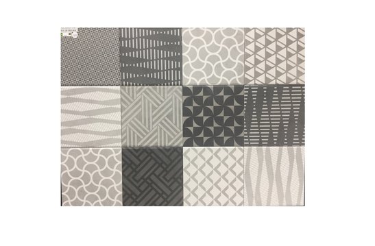 8" x 8" ceramic wall mosaic tile. A Mix of 9 patterns. Available in 3 styles. Made in Brazil.